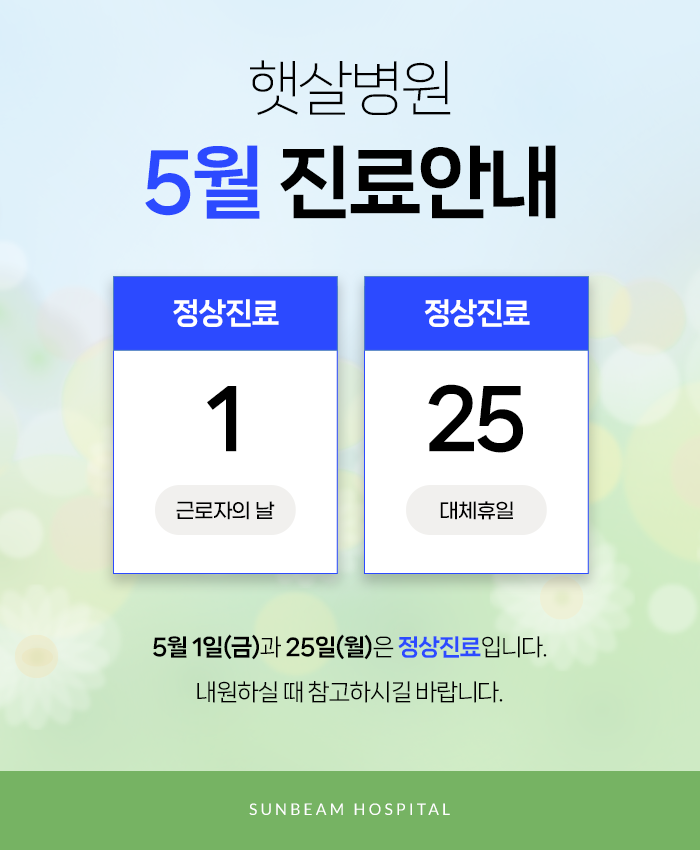 내 몸, 내 가족에게 꼭 필요한 건강, 햇살병원이 함께 하겠습니다.